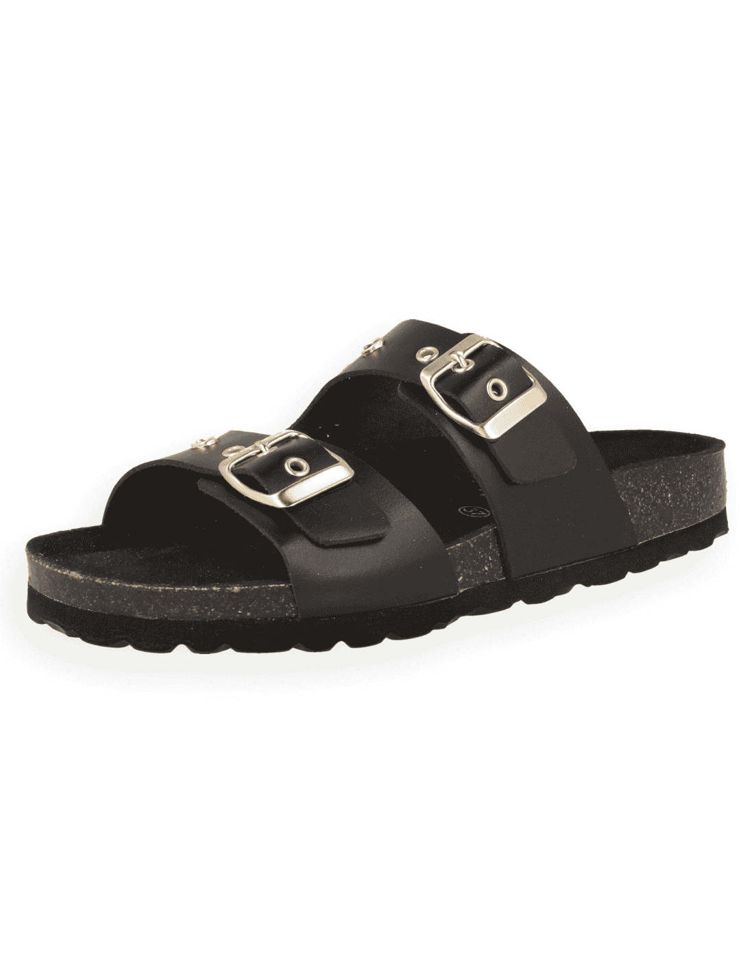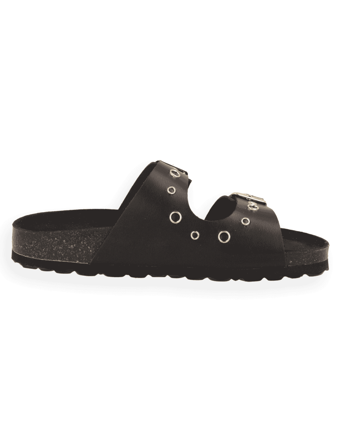SANDALIA CAMBRILS TAUPE D'Torres@, made of suede leather, with elegant stud inserts that give it a contemporary style. Instep adjustment with buckle, stabilizing padded anatomical insole with EVA and lined with natural microfiber, molded with appropriate anatomy for optimal foot support, with its arch elevation and stabilizing heel cup. Suitable for leisure use, preventing common ailments such as plantar fasciitis and fatigued feet. Indicated for women who need comfortable, spacious, and adaptable footwear.