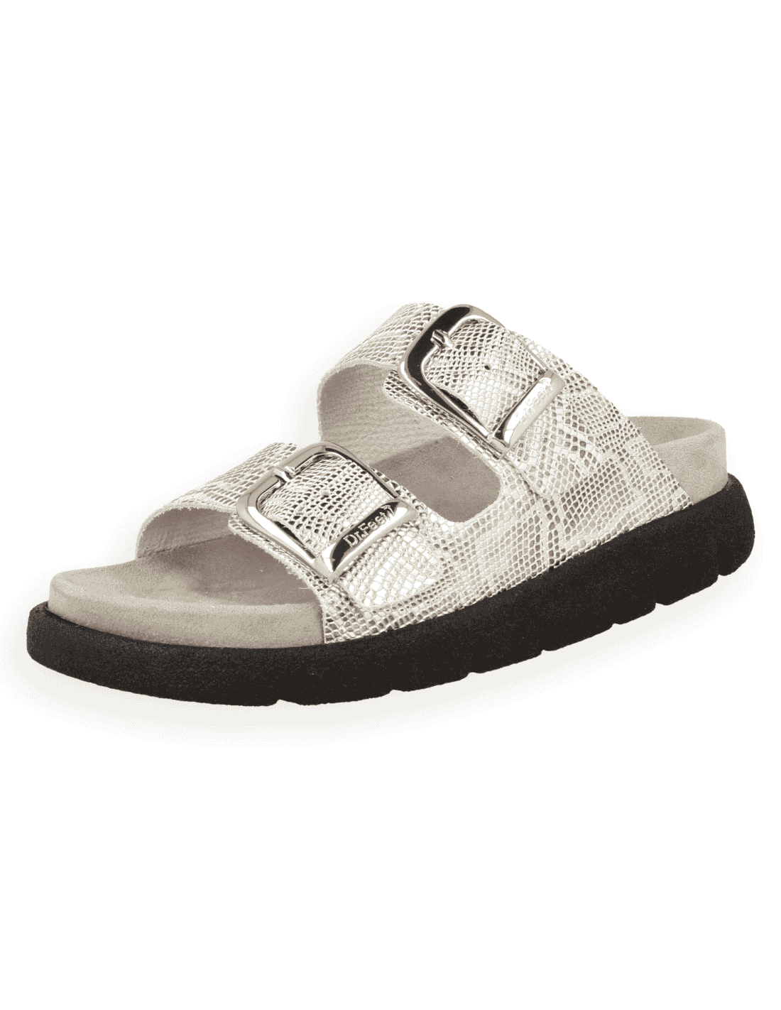 SANDALIA CAMBRILS TAUPE D'Torres@, made of suede leather, with elegant stud inserts that give it a contemporary style. Instep adjustment with buckle, stabilizing padded anatomical insole with EVA and lined with natural microfiber, molded with appropriate anatomy for optimal foot support, with its arch elevation and stabilizing heel cup. Suitable for leisure use, preventing common ailments such as plantar fasciitis and fatigued feet. Indicated for women who need comfortable, spacious, and adaptable footwear.