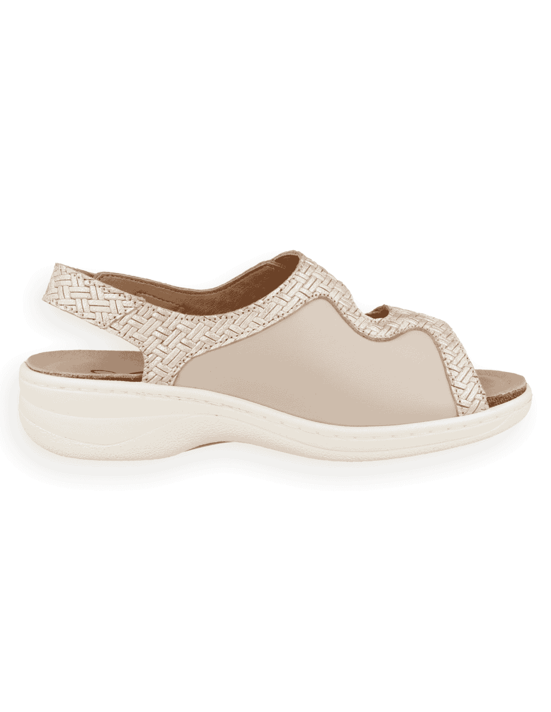 Lady sandal JULIA 25 Pink leather and Lycra elastic adaptable. Adjustment with elastic instep and heel back strap. Suitable to adapt custom insole, manufactured with the best quality materials. Indicated for women who need a shoe comfortable, spacious and adaptable. Seams internal are protected, avoiding chafing and protecting the most sensitive and delicate feet.