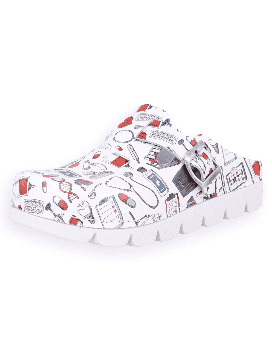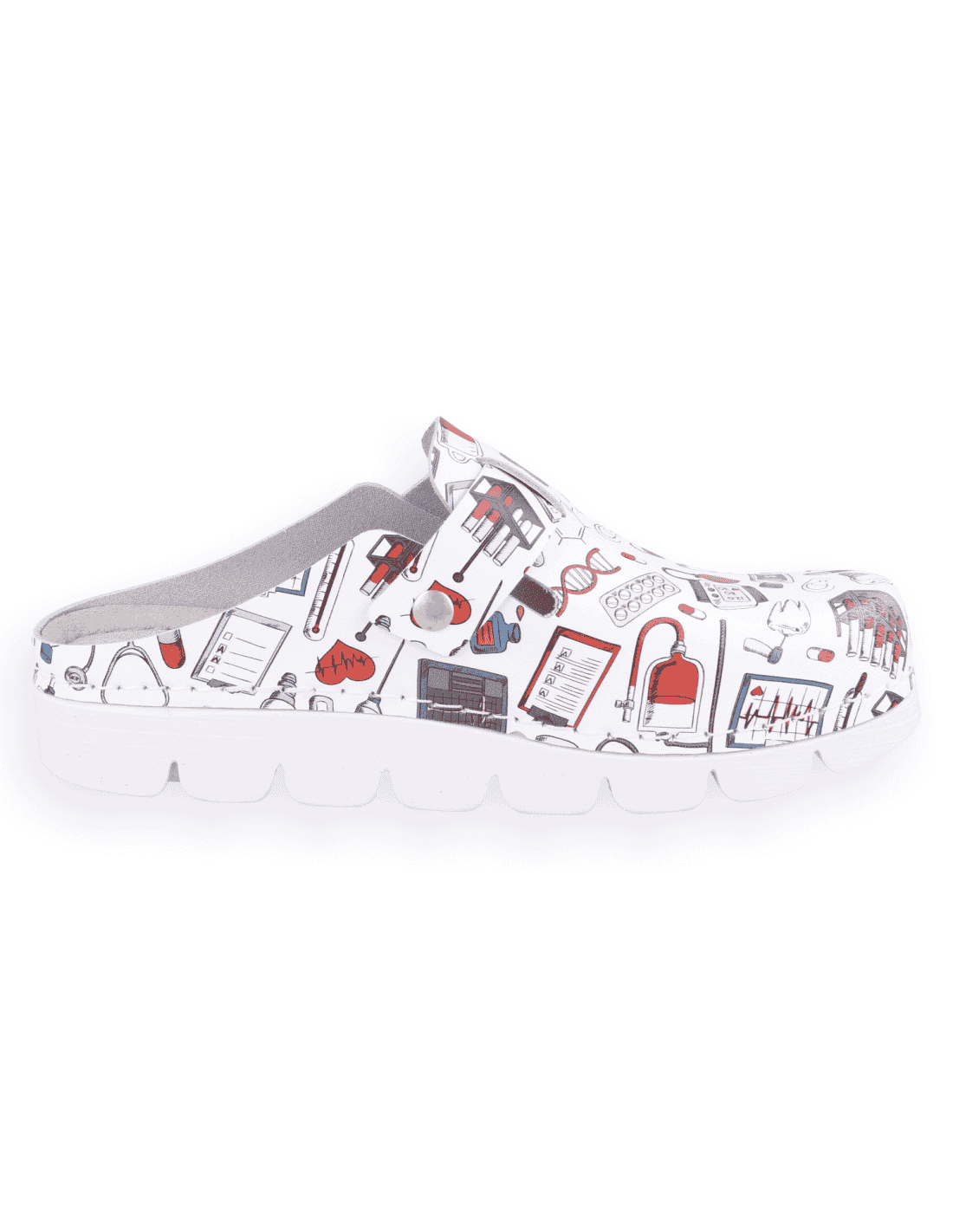 SANITARY COMFORT CLOGS, MASTER BACK STRAP WHITE ICONS