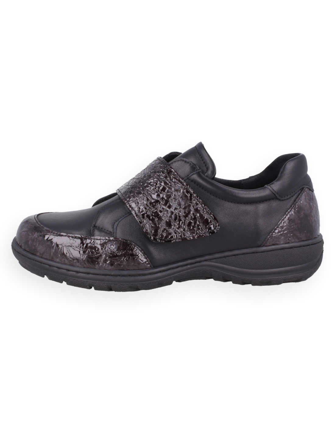 COMFORT WOMEN SHOES LONDRES BLACK. Made with elastic stretch and leather. Suitable to adapt custom insole. Manufactured with the best quality materials. Indicated for women who need a comfortable, spacious and adaptable shoe. Internal seams are protected avoiding chafing and protecting the most sensitive and delicate feet.