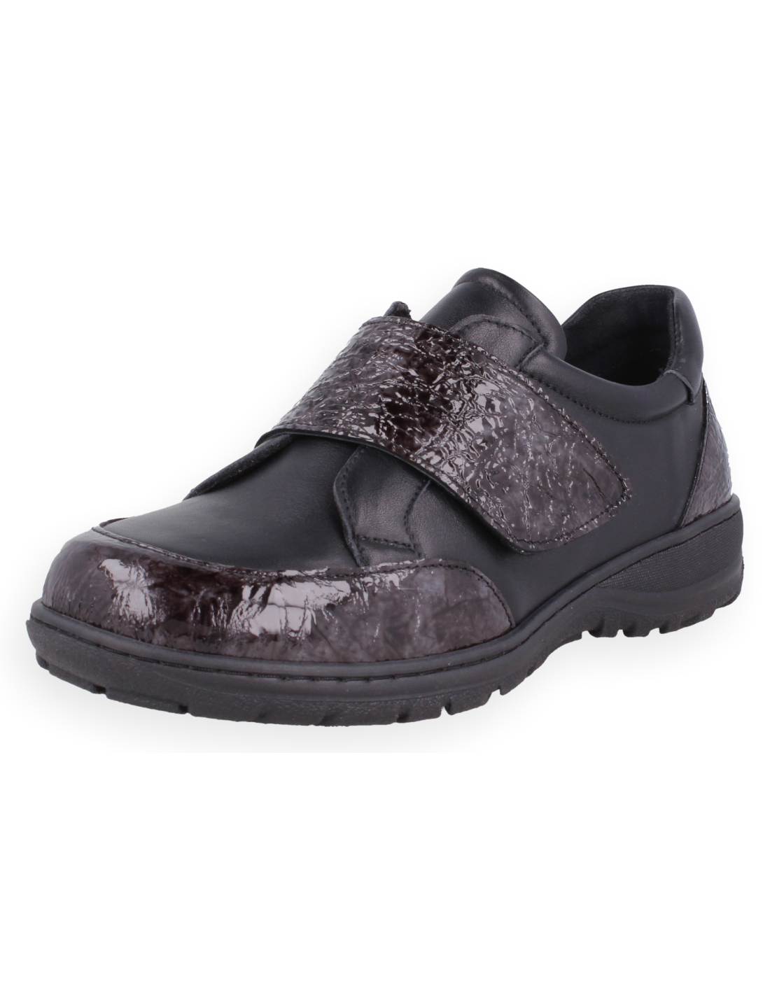 COMFORT WOMEN SHOES PARIS BLACK. Made with elastic stretch and leather. Suitable to adapt custom insole. Manufactured with the best quality materials. Indicated for women who need a comfortable, spacious and adaptable shoe. Internal seams are protected avoiding chafing and protecting the most sensitive and delicate feet.