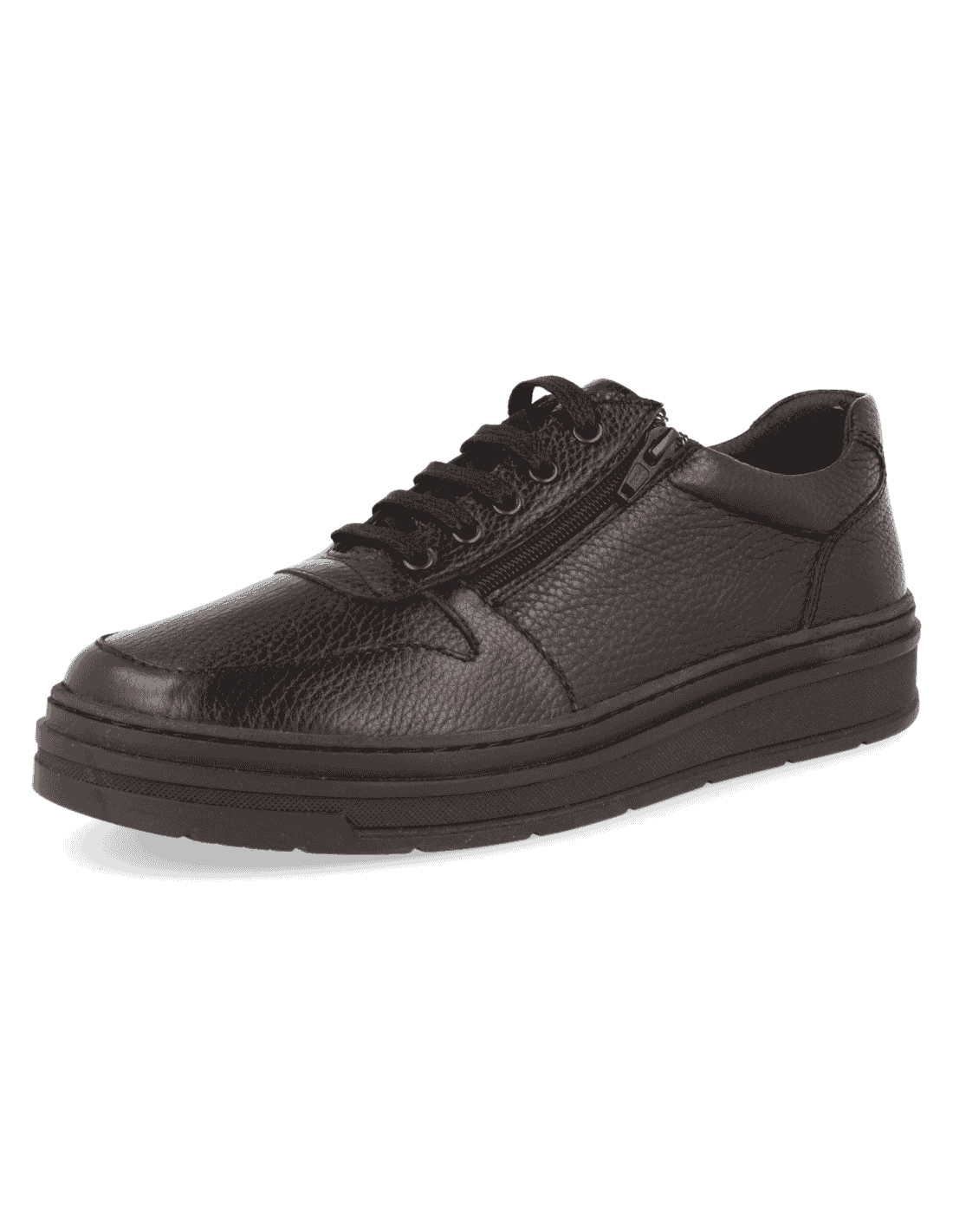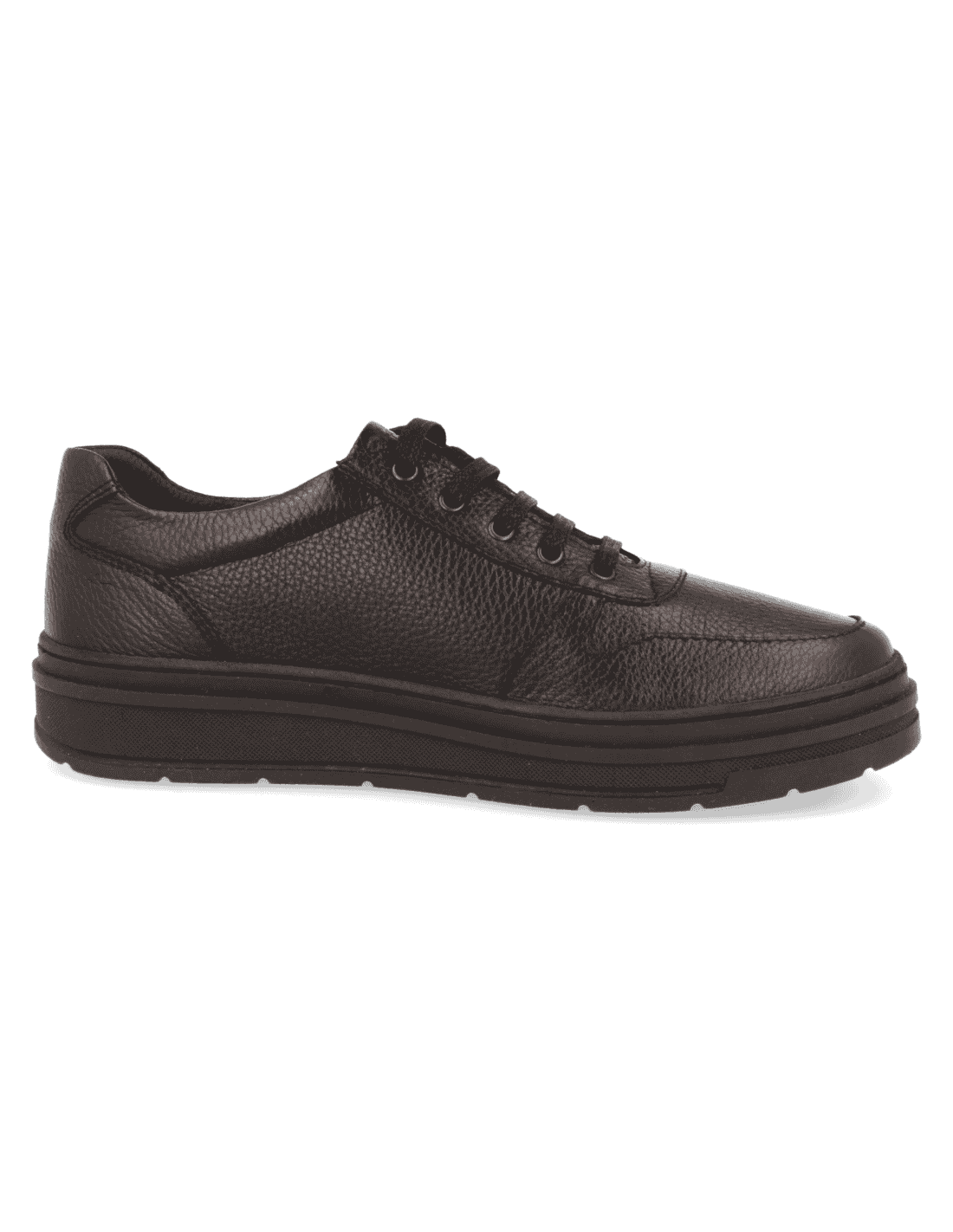 MEN'S SHOE JULEN BLACK, adaptable leather. Adjustable laces on the instep. Suitable for customised insoles, made with the best quality materials. Suitable for men who need comfortable, wide and adaptable footwear. The internal seams are protected, avoiding chafing and preserving the most sensitive and delicate feet. Made with a light and resistant sole.