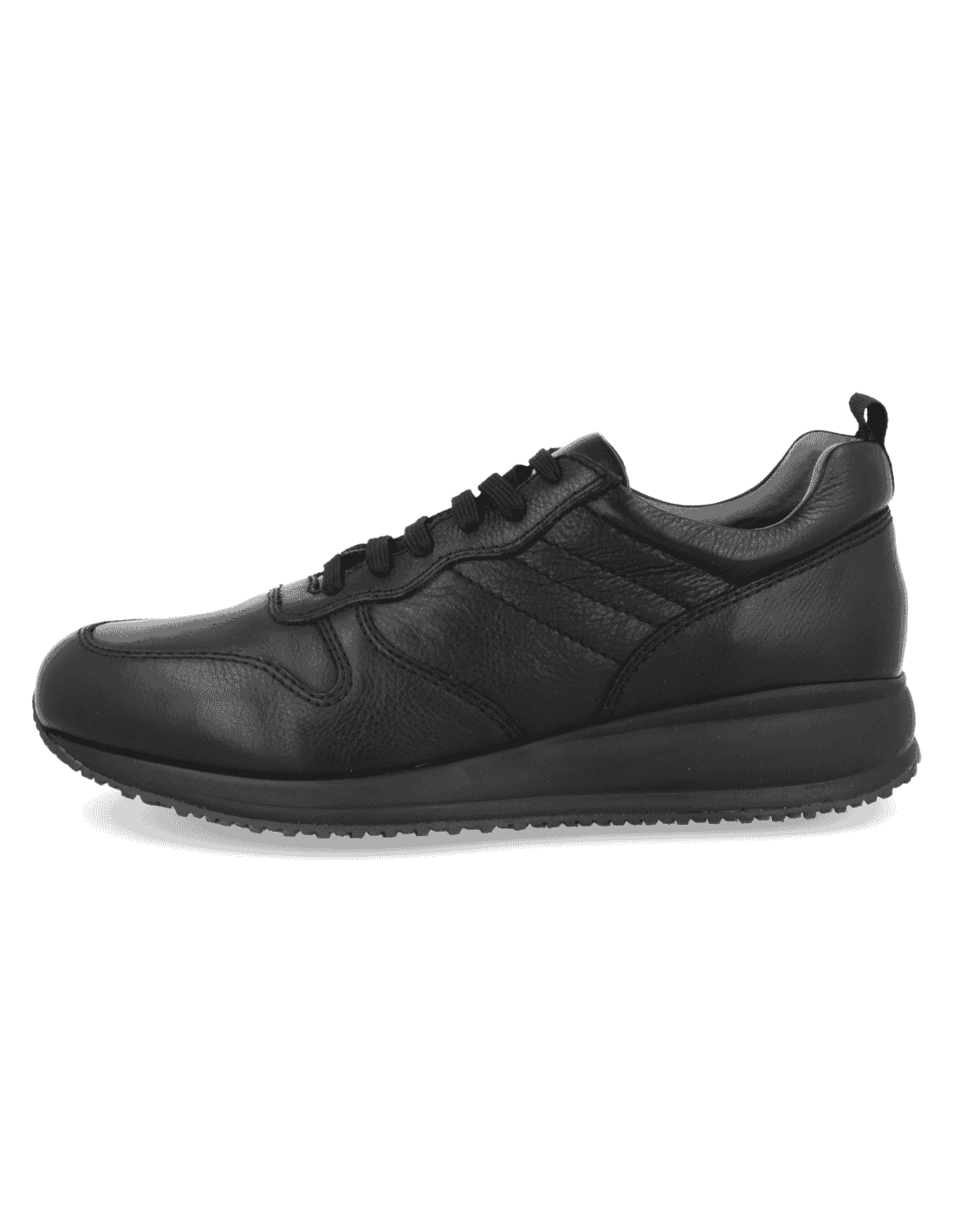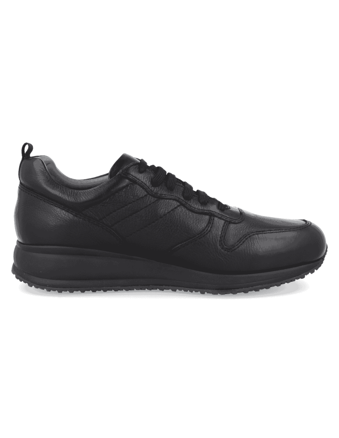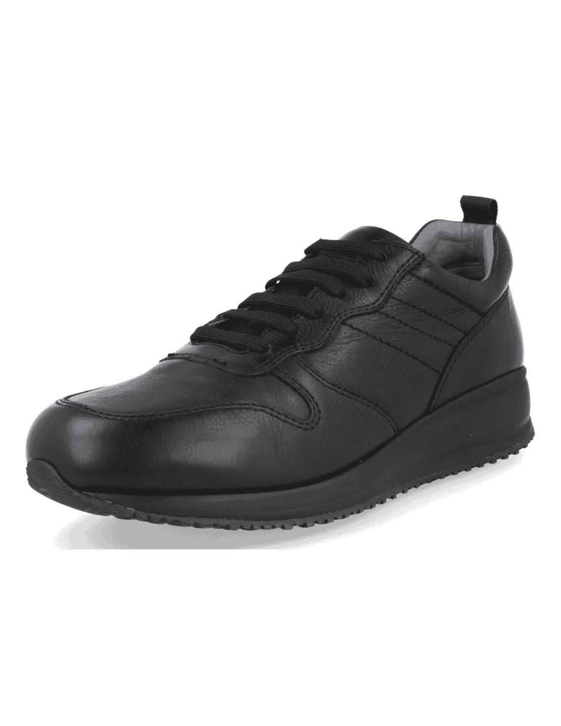 MEN'S SHOE ALBERT 2023 BLACK, adaptable leather. Adjustable laces on the instep. Suitable for customised insoles, made with the best quality materials. Suitable for men who need comfortable, wide and adaptable footwear. The internal seams are protected, avoiding chafing and preserving the most sensitive and delicate feet. Made with a light and resistant sole.
