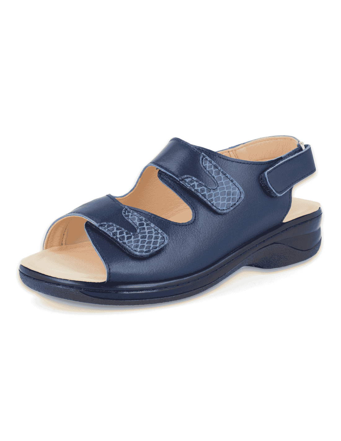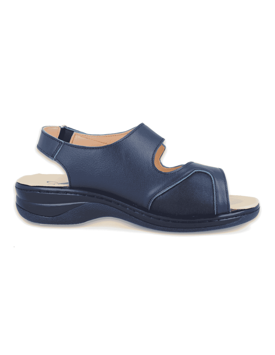 DELICATE FEET WOMEN SANDALS, ADA D1 BEIGE. Made with elastic leather. Suitable to adapt custom insole. Manufactured with the best quality materials. Indicated for women who need a comfortable, spacious and adaptable shoe. Internal seams are protected avoiding chafing and protecting the most sensitive and delicate feet.