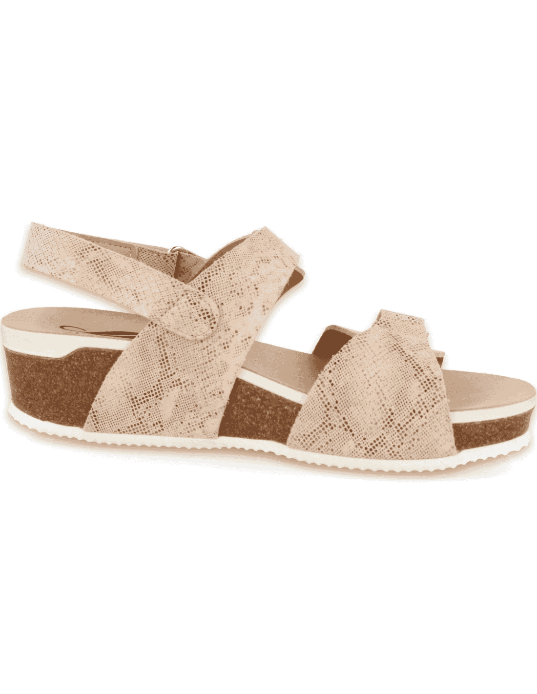 GANDIA SANDAL LINEN, made with napa leather. Instep adjustment with double strap. Anatomically stabilizing cushioned insole with EVA, lined with natural microfiber, and molded with suitable anatomy for optimal foot support. With its elevated arch and heel stabilizing cup, it allows for leisure use, preventing plantar fasciitis and tired feet. Suitable for women in need of comfortable, spacious, and adaptable footwear."