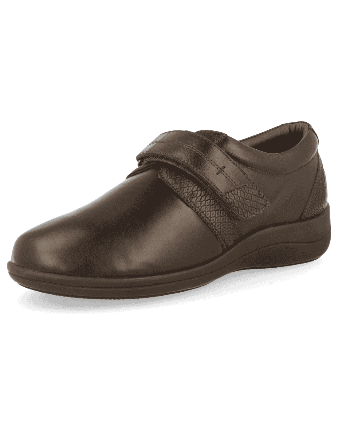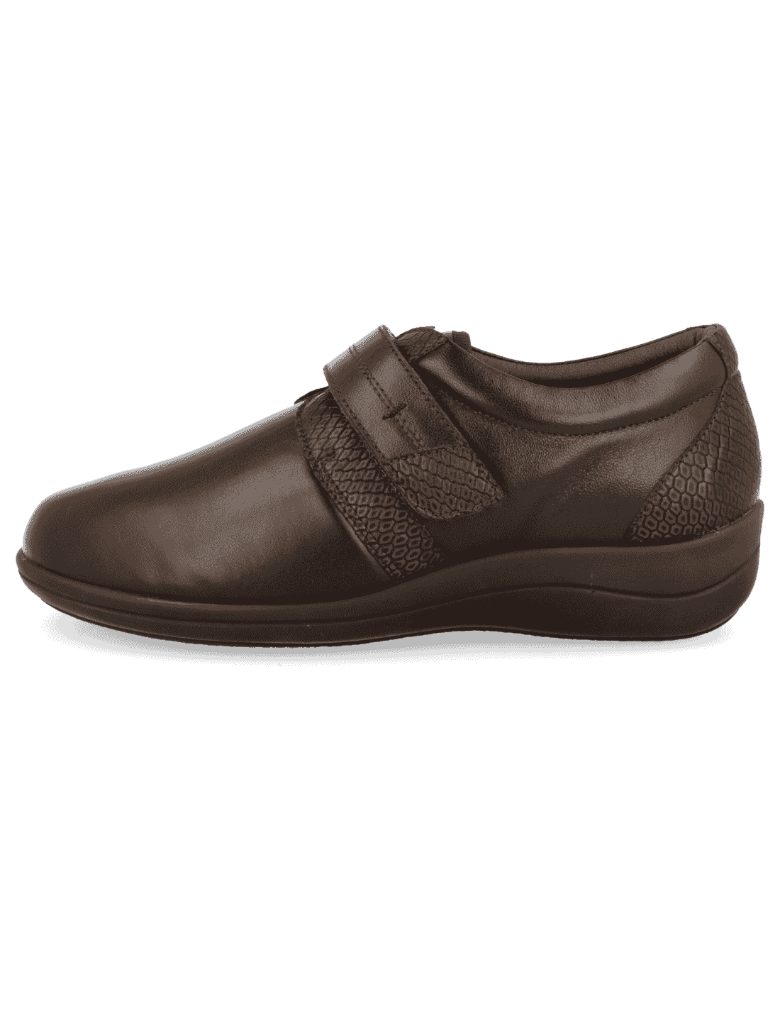 SENSITIVE FEET WOMEN SHOES, LARA 02 BROWN, leather and lycra elastic adaptable. Adjustment with strap on the instep. Suitable to adapt custom insole , manufactured with the best quality materials. Indicated for women who need a shoe comfortable, spacious and adaptable. Seams internal are protected, avoiding chafing and protecting the most sensitive and delicate feet. New Polyurethane pivots non-slip sole: provides lightness, stability and flexibility under foot.