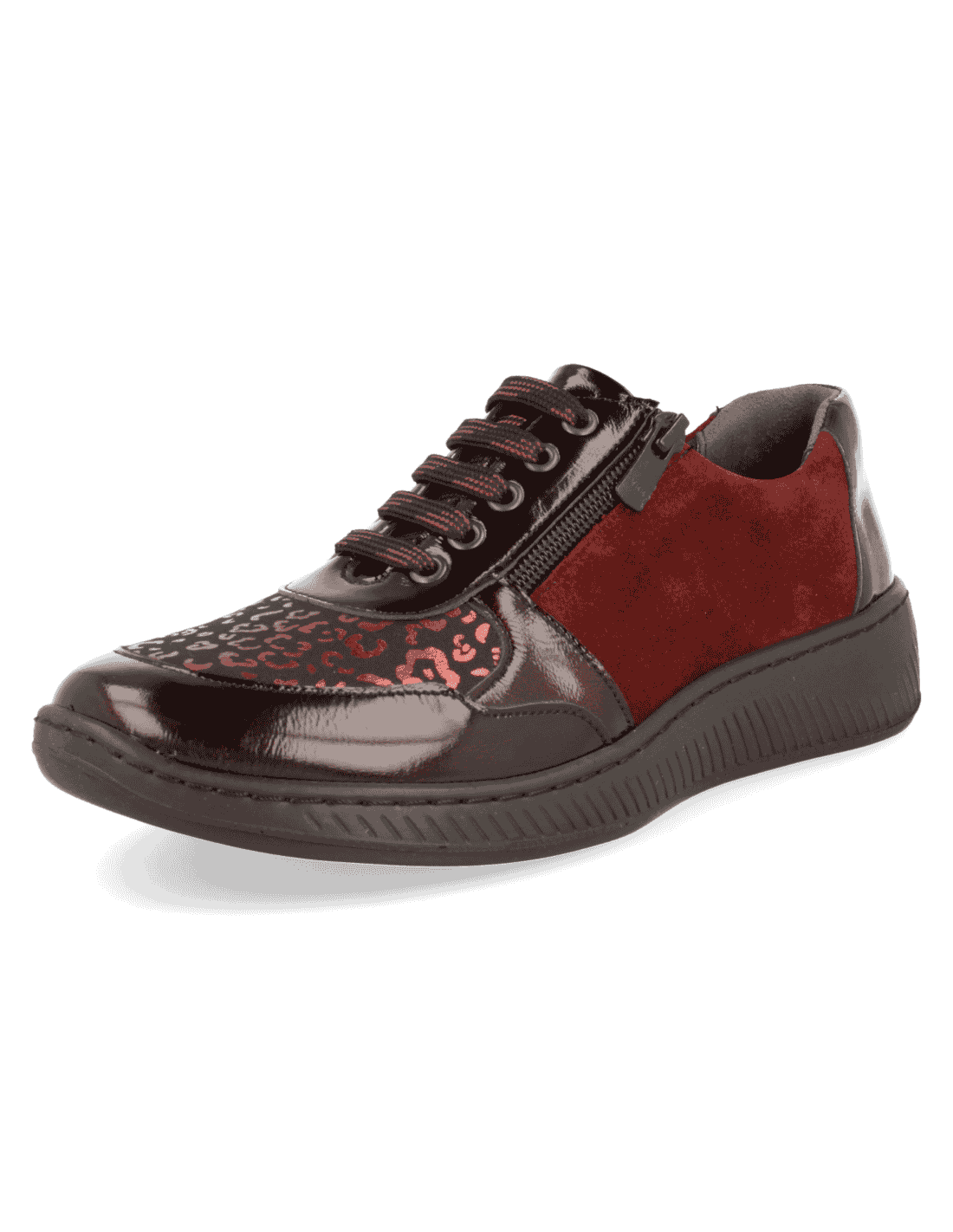 COMFORT WOMEN SHOES HABANA BURGUNDY. Made with elastic stretch and leather. Suitable to adapt custom insole. Manufactured with the best quality materials. Indicated for women who need a comfortable, spacious and adaptable shoe. Internal seams are protected avoiding chafing and protecting the most sensitive and delicate feet.