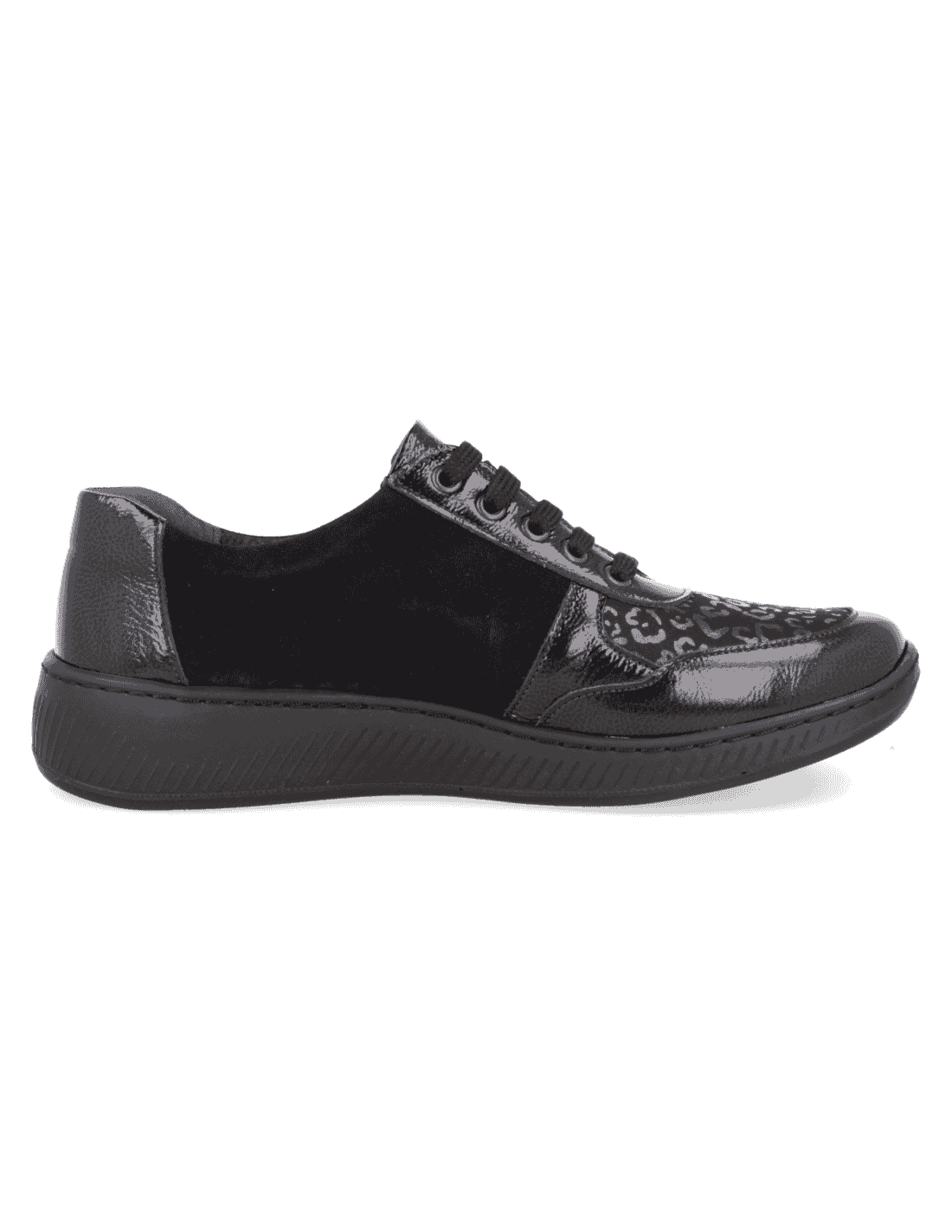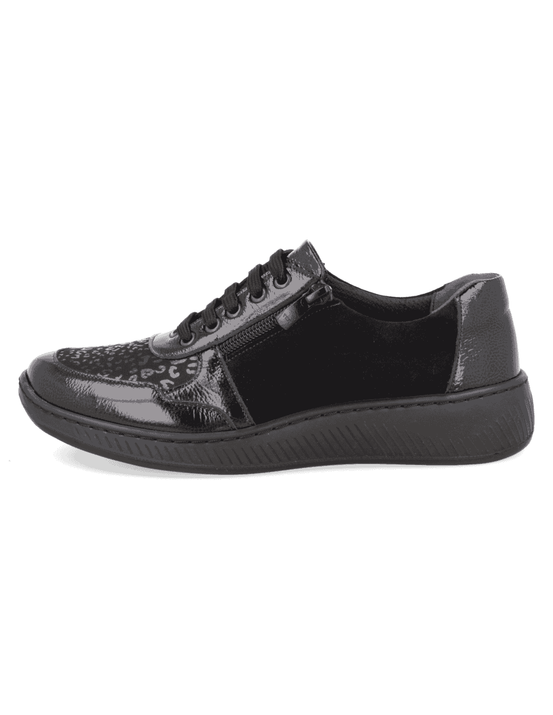 COMFORT WOMEN SHOES PARIS BLACK. Made with elastic stretch and leather. Suitable to adapt custom insole. Manufactured with the best quality materials. Indicated for women who need a comfortable, spacious and adaptable shoe. Internal seams are protected avoiding chafing and protecting the most sensitive and delicate feet.