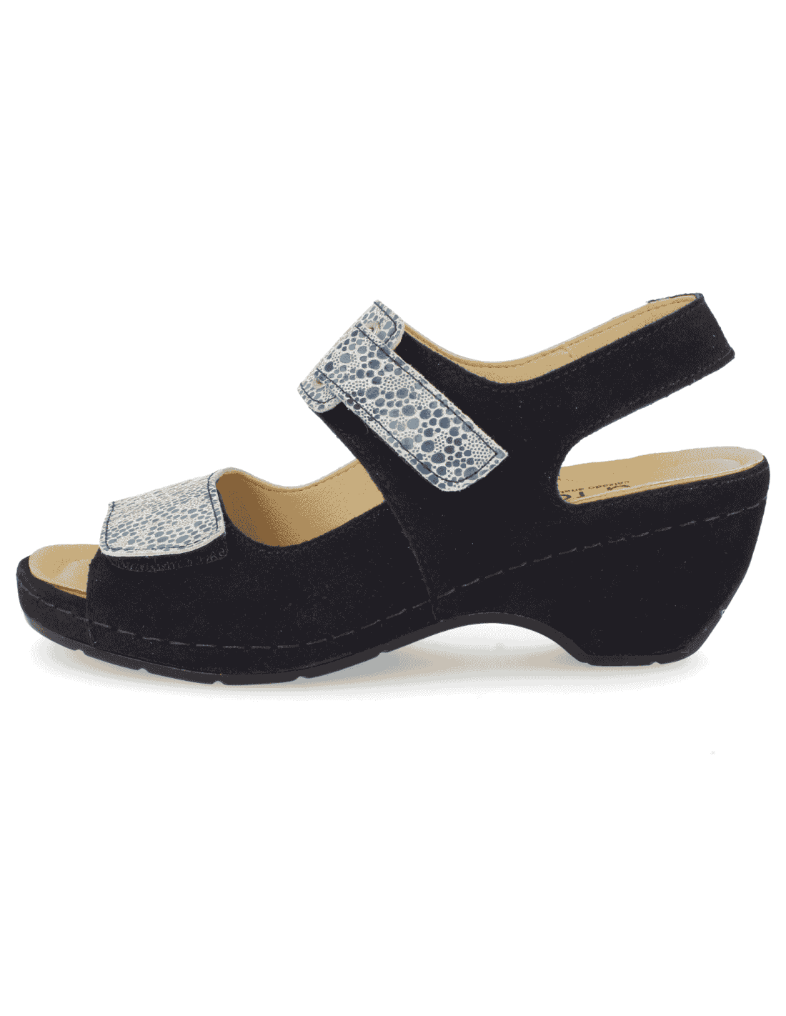 SENSITIVE FEET WOMEN SHOES, VIOLET 01 BLACK, elastic leather adaptable. Adjustment with strap on the instep. Suitable to adapt custom insole , manufactured with the best quality materials. Indicated for women who need a shoe comfortable, spacious and adaptable. Seams internal are protected, avoiding chafing and protecting the most sensitive and delicate...