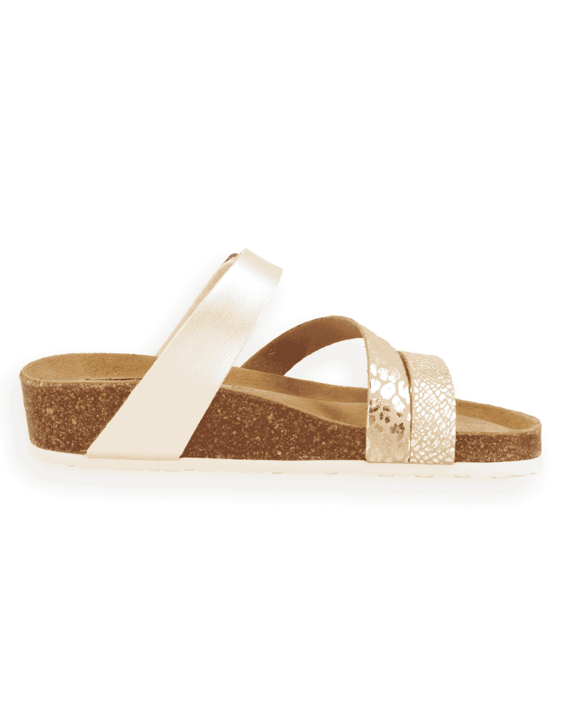 SANDALIA CLEO PLATINO D'Torres@, fabricado piel serraje, con inserciones de elegantes remaches que le dan un toque de estilo actual. Ajuste empeine con hebilla plantilla anatómica estabilizadora acolchada con EVA y forrada con microfibra natural y moldeada con una anatomía adecuada para una optima sujeción del pie, con su elevación del arco y cazoleta estabilizadora del talón, permite sus utilización para tiempo libre, previniendo de posibles dolencia comunes como fascitis plantar y pies fatigados. Indicado para mujeres que precisan un calzado cómodo, amplio y adaptable.