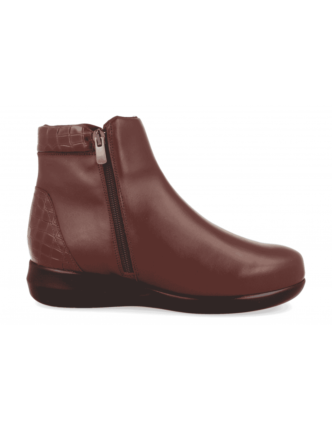 BOTÍN COMBA 02 MARRÓN, piel adaptable. Ajuste cremallera en el interior. Apto para adaptar plantillas a medida, horma extra-ancha, fabricados con los mejores materiales de primera calidad. Indicado para mujeres que precisan un calzado cómodo, amplio y adaptable. Las costuras internas están protegidas, evitando rozaduras y protegiendo los pies más sensibles y delicados.