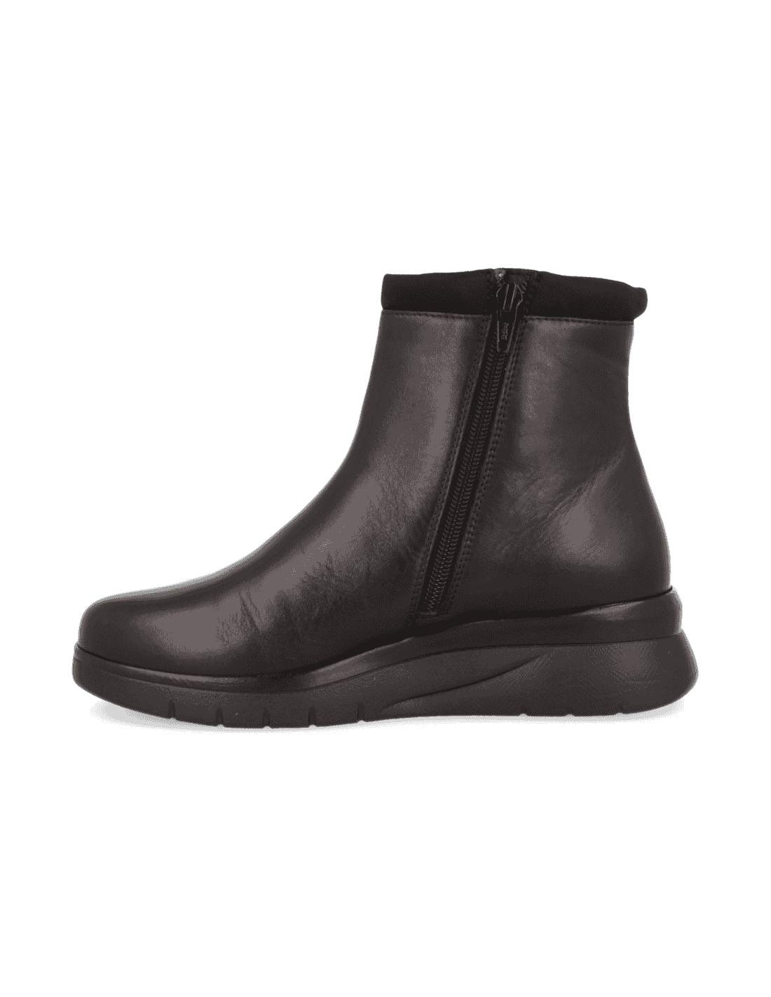 BOTÍN DALLAS NEGRO, piel muy flexible y adaptable. Ajuste cremallera en interior y elástico en exterior. Apto para adaptar plantillas a medida, horma extra-ancha, fabricados con los mejores materiales de primera calidad. Indicado para mujeres que precisan un calzado cómodo, amplio y adaptable. Las costuras internas están protegidas, evitando rozaduras y protegiendo los pies más sensibles y delicados.