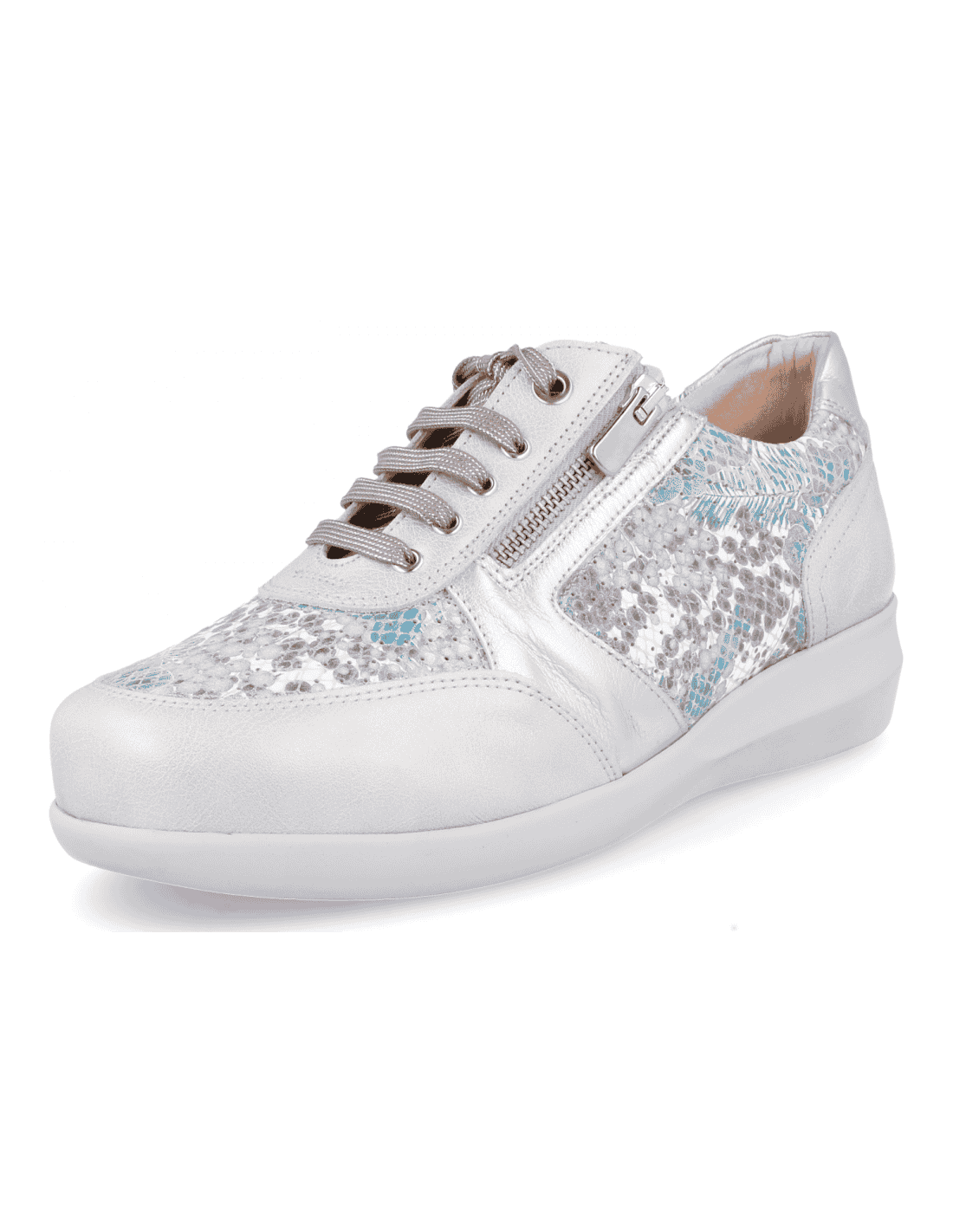 ZAPATO SEÑORA IRMA 23 PLATA, de piel adaptable Ajuste cremallera. Apto para adaptar plantillas a medida, horma extra-ancha, fabricados con los mejores materiales de primera calidad. Indicado para mujeres que precisan un calzado cómodo, amplio y adaptable. Las costuras internas están protegidas, evitando rozaduras y protegiendo los pies más sensibles y delicados.