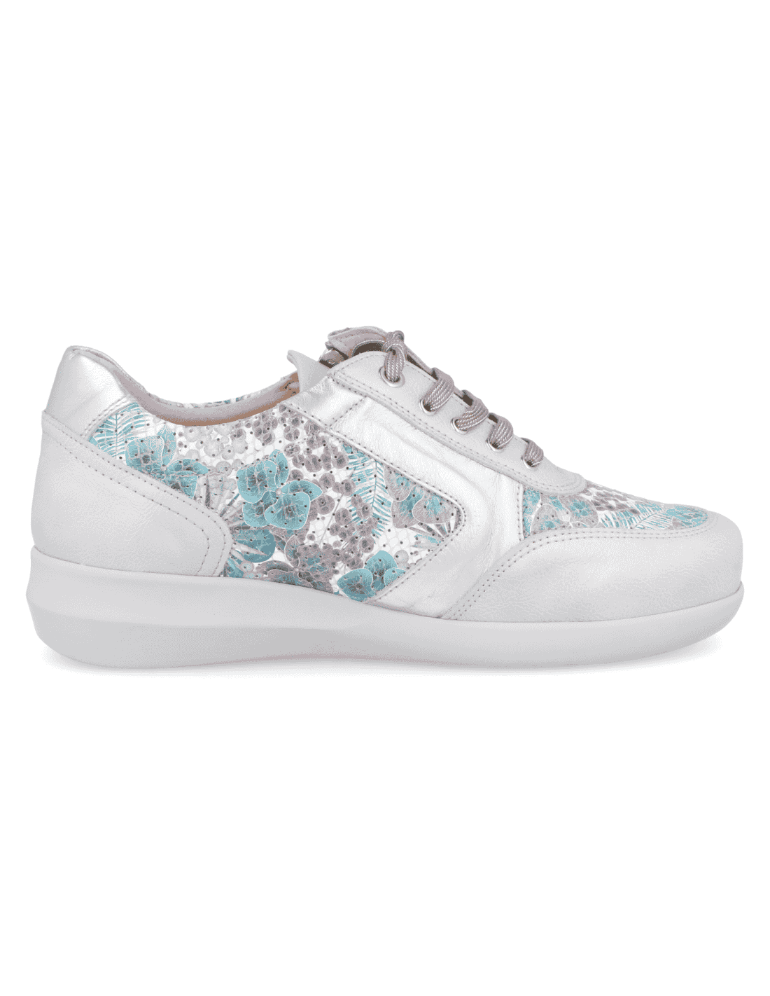 • Corte : Deportivo señora de diseño actual, fabricado en piel adaptable de vacuno, y licra, que fusiona la elegancia con el máximo confort y adaptabilidad. Las costuras internas estan protegidas, evitando roces o erosiones en pies sensibles.