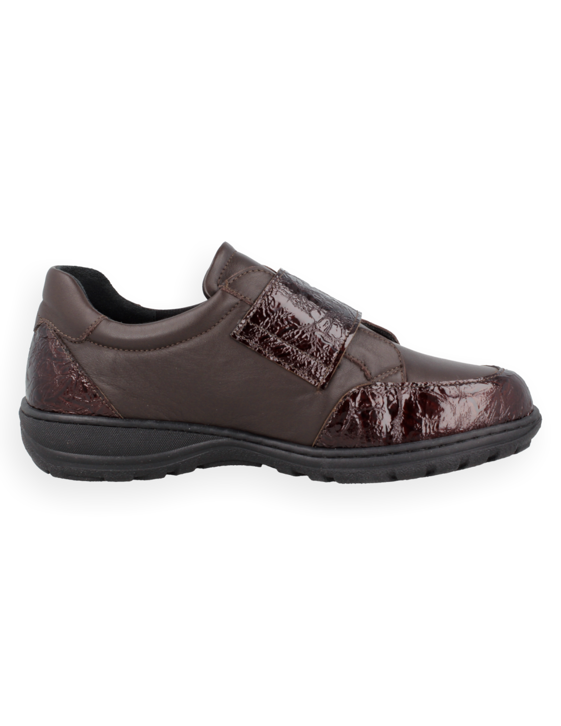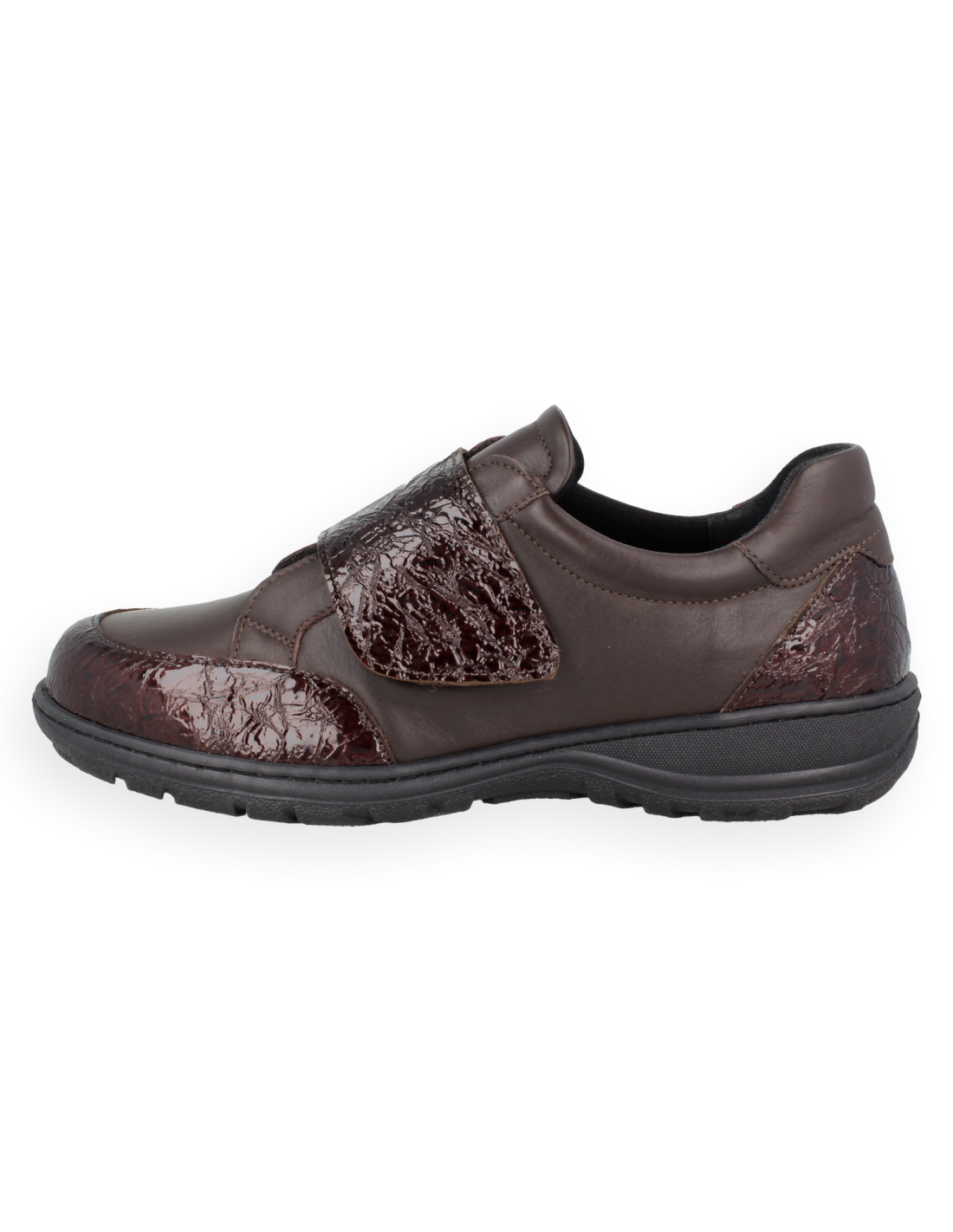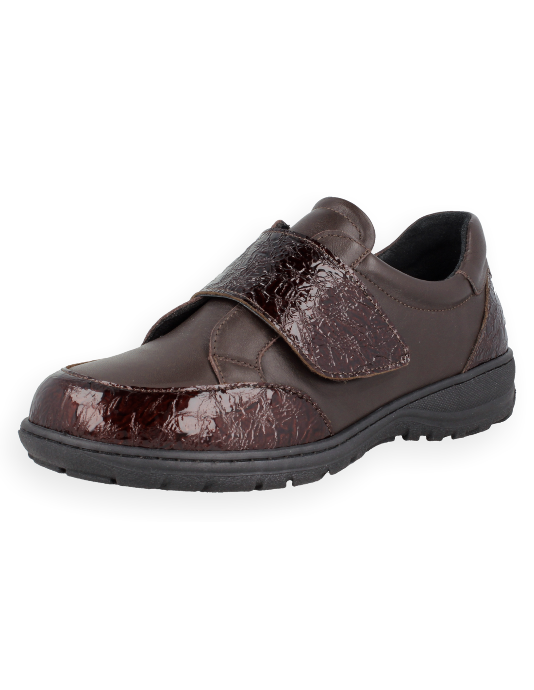 Desfrute do conforto definitivo com o Sapato Celina Marrom de Forma Extra Larga K. Desenhado para pés delicados com joanetes, dedos em garra ou pé diabético. Fabricado em pele de napa adaptável, fecho de velcro ajustável e sola de poliuretano leve e antiderrapante para uma passada segura. Inclui forros tecnológicos antibacterianos e palmilhas anatómicas de suporte. Saúde e elegância no seu dia a dia!
