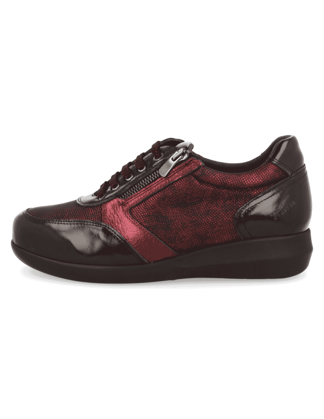 ZAPATO SEÑORA IRMA 2023 NEGRO BURDEOS, de piel adaptable Ajuste cremallera. Apto para adaptar plantillas a medida, horma extra-ancha, fabricados con los mejores materiales de primera calidad. Indicado para mujeres que precisan un calzado cómodo, amplio y adaptable. Las costuras internas están protegidas, evitando rozaduras y protegiendo los pies más sensibles y delicados.